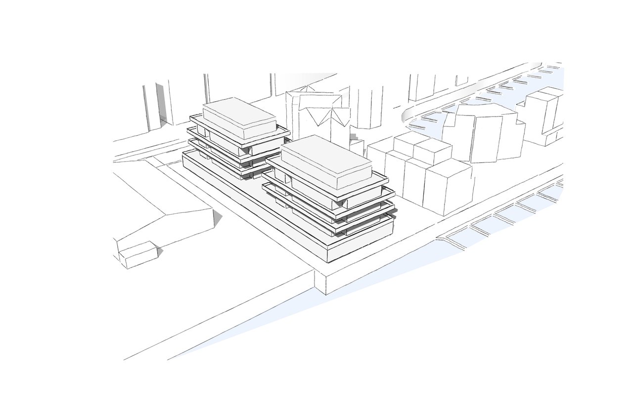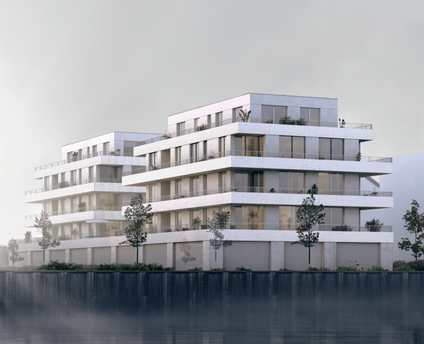 In unmittelbarer Wassernähe wird ein neues Wohnbauvorhaben der City-Marina GmbH geplant. Das ausgewählte Gelände ist derzeit eine Brachfläche, die von BewohnerInnen der Umgebung als Stellplatzfläche genutzt wird. Um in Zukunft dem hohen Stellplatzbedarf und der HafenMA-Versorgung gerecht zu werden wird eine angemessene Planung nachgewiesen. Die geplante Bebauung passt sich mit ihrem modernen Stil den Neubauten der Umgebung an. Ein Sockel im Erdgeschoss bildet die Basis der Gebäude und lässt mit der horizontalen Gliederung der Fassaden durch Absturzsicherungen und dem Spiel von industriellen Materiealien eine industrielle Anmutung entstehen. Umlaufende Terrassen erhöhen den Wohnwert um das Gefühl, an jeder Stelle hinaus treten zu können. Die Aufweitungen erschaffen zu dem Wohnraum ergänzenden Freiräume. Auch werden die Terrassen zu einem Ort von Zusammentreffen oder zufälligen Begegnungen. Der hohen Nachfrage an kleinen Wohnungen, wird mit qualitativen Wohneinheiten nachgegangen. Um die verschiedenen Bedarfsansprüche zu decken, gliedern sich die Wohnungen in Ein-, Zwei-, Drei-, oder Vierzimmer Wohnungen. Letztere befinden sich in Penthouselage und verfügen über eine individuelle Dachterrasse.